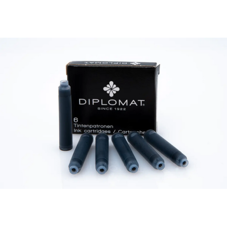 Profitez d’une écriture nette, élégante et professionnelle avec cet étui de 6 cartouches d’encre noire Diplomat. Compatibles avec les stylos plume utilisant le format international standard, ces cartouches offrent un débit régulier et une excellente intensité de couleur.