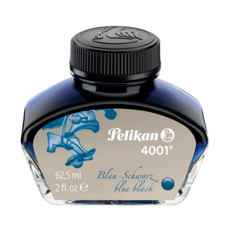Le Flacon d'encre 4001® Bleue Noire 62,5 ml Pélikan® est une encre de qualité supérieure fabriquée en Allemagne. Cette encre de couleur bleue-noire a été spécialement conçue pour les plumes et stylos-plume, offrant une expérience d'écriture fluide et sans bavures.