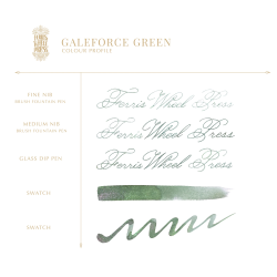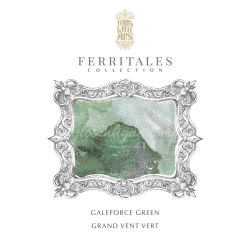 Plongez dans l’univers poétique de la collection Ferritales avec l’encre Galeforce Green (Grand Vent Vert), une teinte verte profonde balayée de fines paillettes qui évoquent la puissance des bourrasques émeraude. Cette encre offre un rendu nuancé, mêlant vert froid, ombrages subtils et reflets brillants qui changent selon l’angle de lumière.