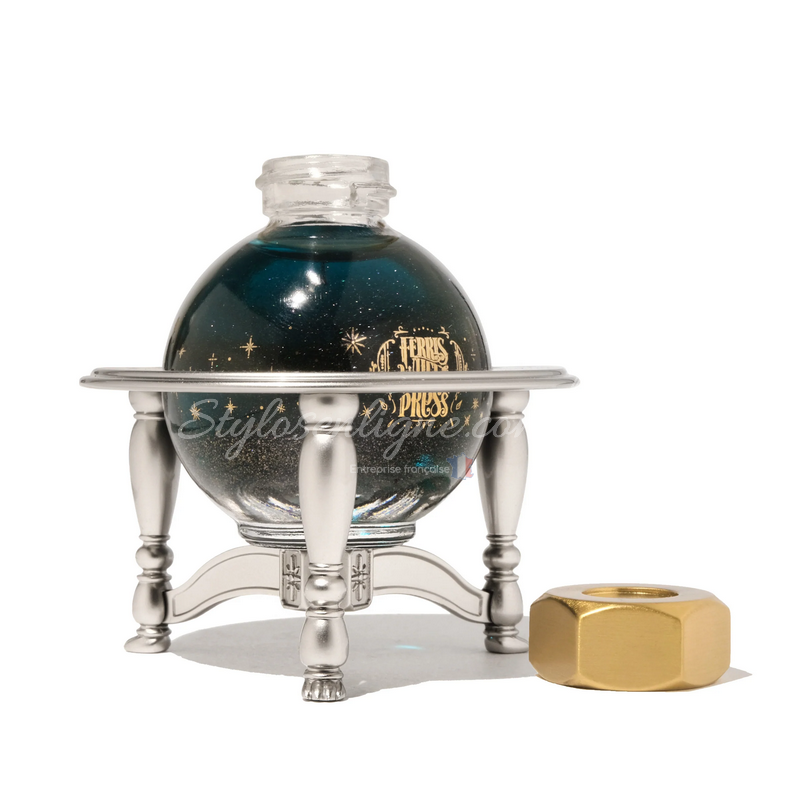 Fabriqué avec une base solide et des pieds sculptés, l’Ink Carriage offre une stabilité parfaite pour maintenir votre flacon incliné ou droit, facilitant ainsi le mélange de l'encre ou le remplissage de votre stylo-plume. Son design métallique détaillé rappelle les instruments astronomiques d’antan, tout en apportant une touche contemporaine et élégante.